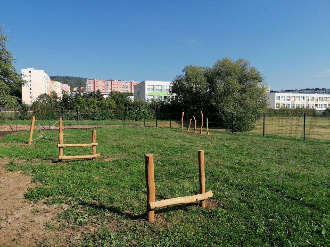 - Oplocený areál s travnatým povrchem