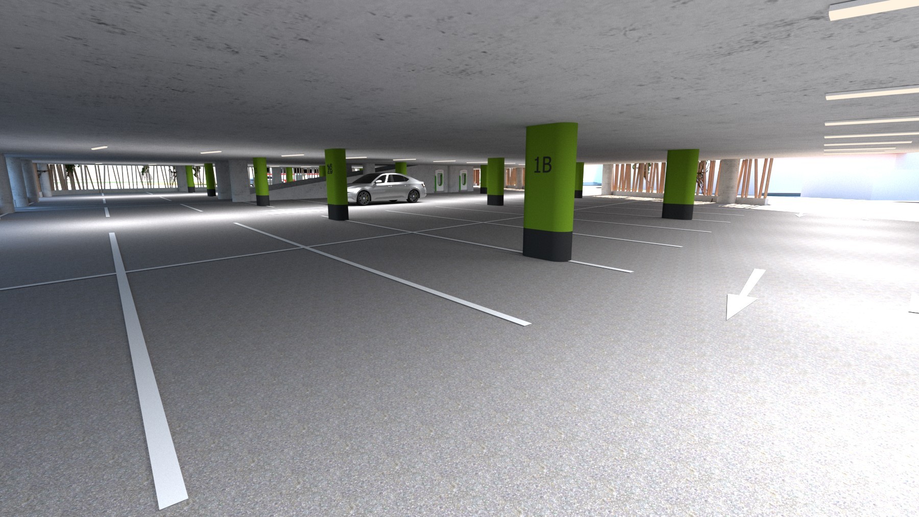62 stání v 1. NP parkovacího domu,